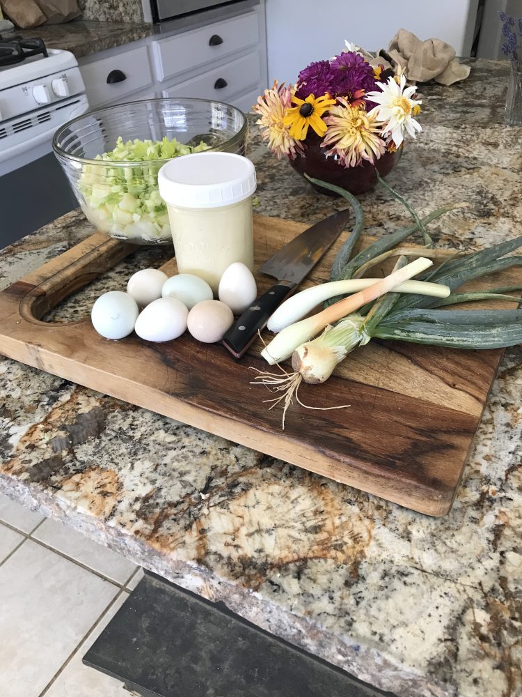 We are getting ahead start on our Fourth of July BBQ , we started with a recipe called the worlds best potatoe salad we cook the dressing and we start out by making our farm fresh mayonnaise using our farm fresh pastured eggs, also boiled farm fresh pastured eggs some farm onions. We like to make...