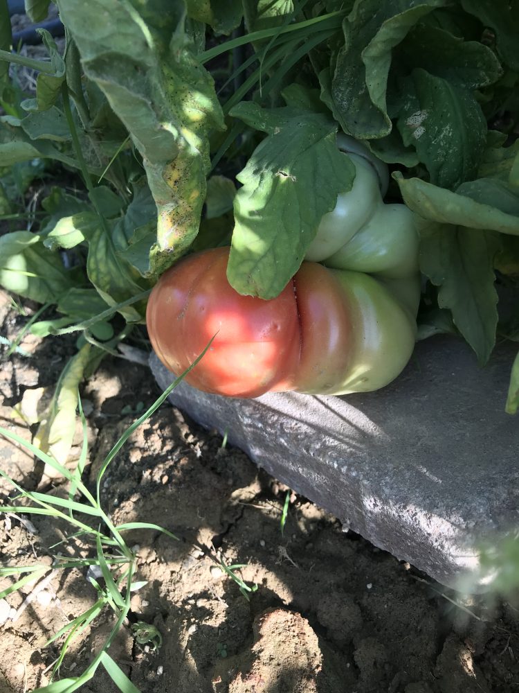 Our heirlooms are starting to turn colors these two are totally different one is called blue beauty beef steak slicer weighing 8 oz the flavor is as good as thier outstanding antioxidant content, the other is German Johnson very large 1-2pound deep pink delicious....