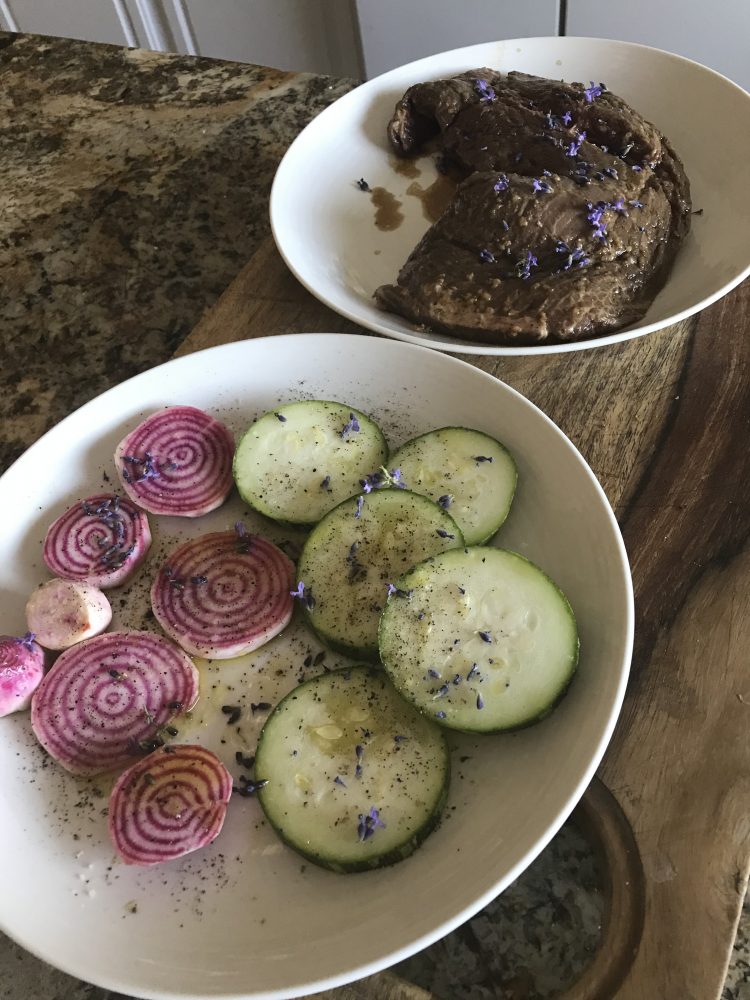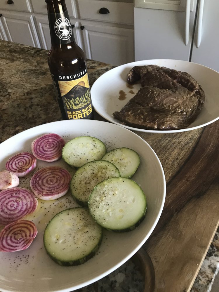 We are making flat iron steak marinated in black beer with lots more stuff and our heirloom grilled beets and squash. Oilve oil salt and pepper is all you need when using farm fresh ingredients....