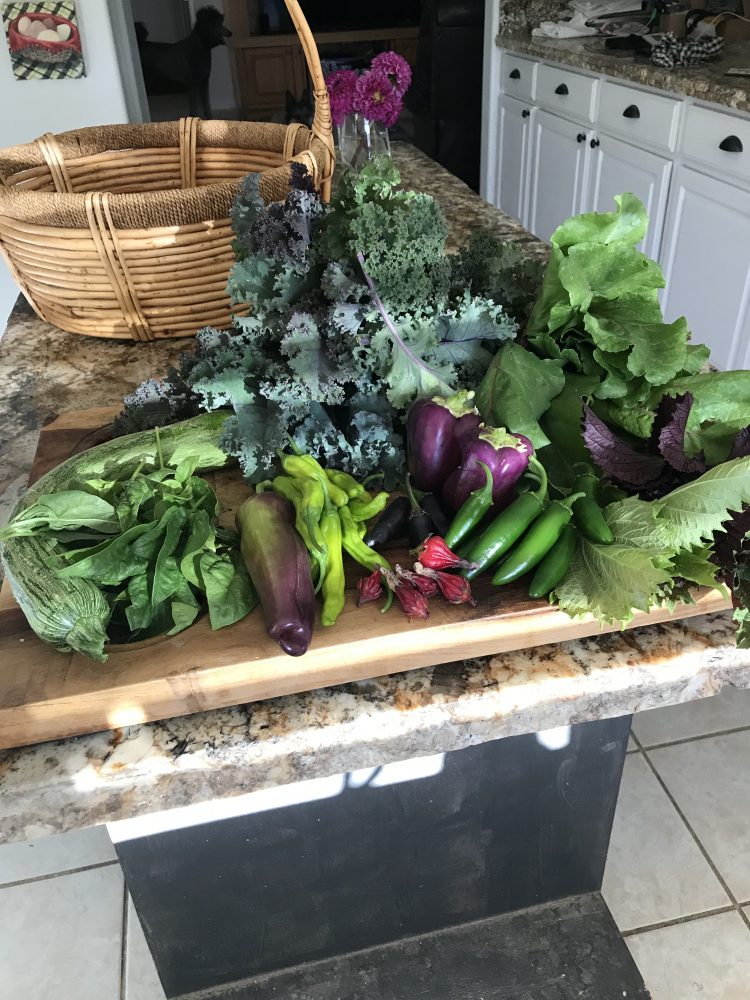 We harvested some of our summer crops on the first day of summer. We have kale, spinach , beet greens, many different peppers, along with hibiscus pods....