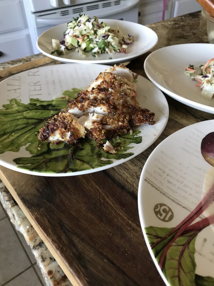 We made simple organic chicken breasts with Reginano cheese Incrusted along with a farm chopped salad. It is funny how we go from comport food in the winter with soups ect to light and airy food for the summer it’s like winter you suffer from the cold and prefer to cook and process food to it’s so...