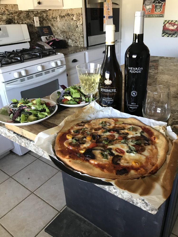 We made Farm to table salad with farm made pizza and had some of my favorite Rombauer Chardonnay we belong to thier wine club and then some of Michaels Nevada ridge local winery Zinfandel that uses our farm vineyard grapes ....
