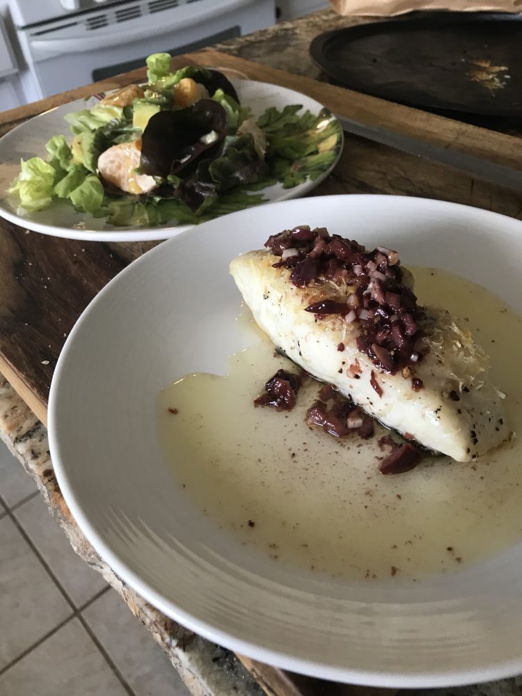This is funny as I do not like cooked fish, I love shell fish and sushi though. We recently had the opertunity to eat out in Las Vegas and the San Francisco Bay Area and Michael try’s to order fish as I don’t eat it he ordered halibut three times and told me mine is better. Tonight I made him...