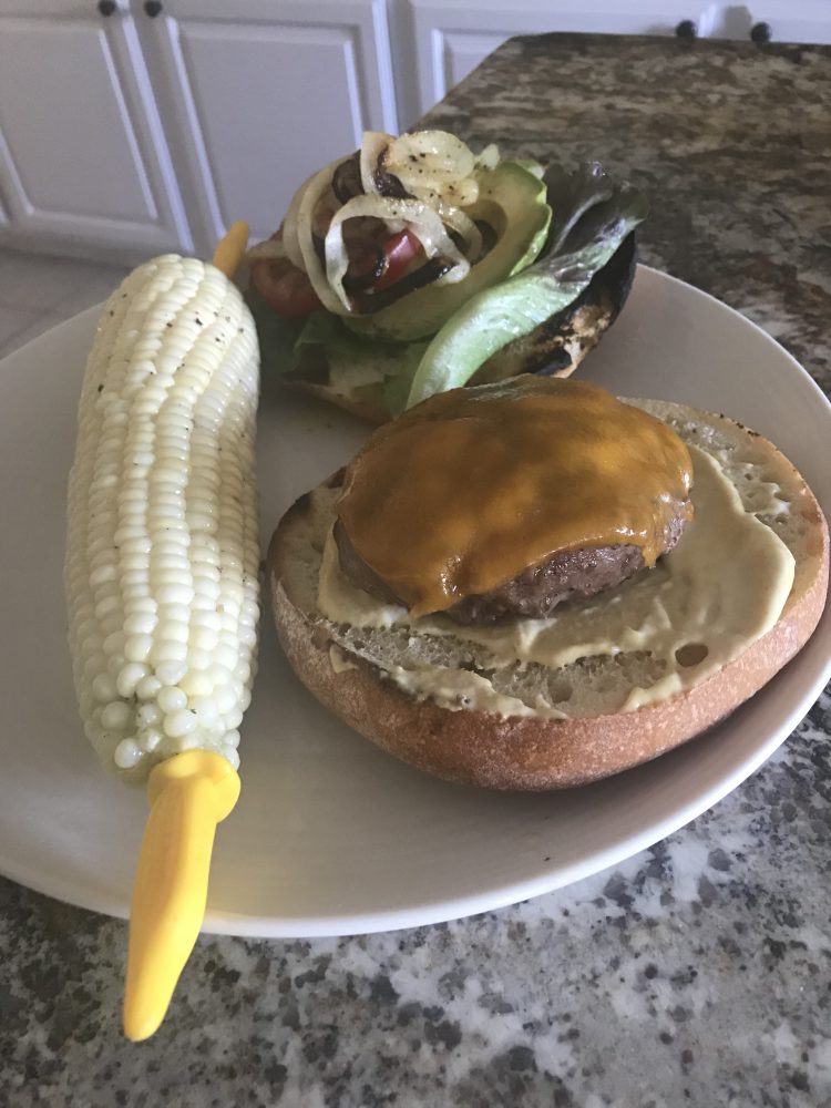 All organic we had burgers and corn we fire roasted onions used organic hamburger and our local o happy bread buns....