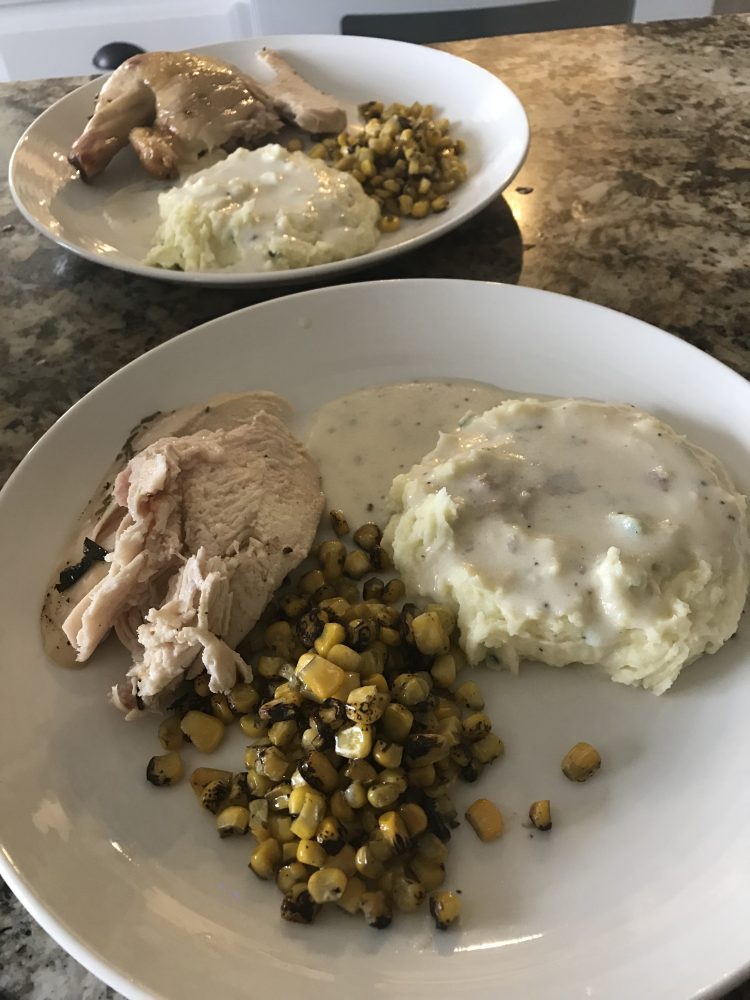 Although it’s not pretty it is almost all organic and one of my favorite meals The only part not organic is the out of season fire roasted corn the herb chicken was moist and delicious along with organic mashed potatoes with our farm chives and then then the gravy my mom thought me how to make the...