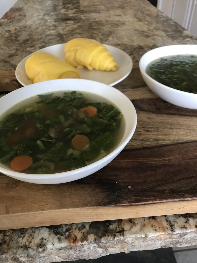 We had our delicious turkey drum stick soup using our organic pastured turkey meat organic vegetables and our good friends pumpkin bao bread . What a delicious meal on the farm....