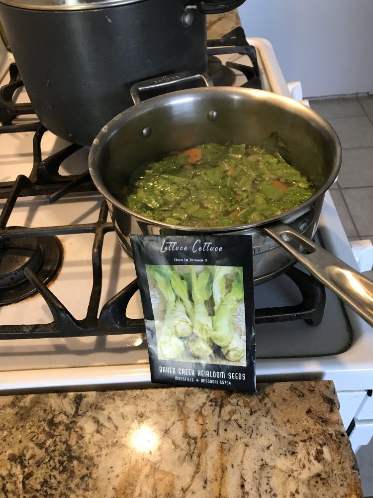 We made our turkey drumstick soup using some of our farm grown lettuce cettuce an old world crop that China released in 1840and high in vitamin C ....