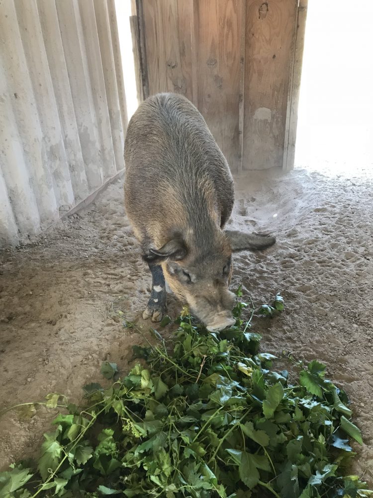 We have been trimming and guiding the vineyards and our pigs just love the trimmings....
