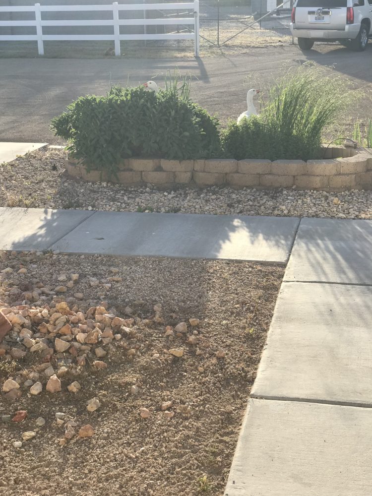 Frizzle is in the middle of the sage plant while Frazzle looks on....