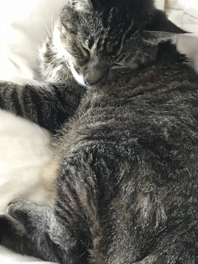 Here she is sleeping so soundly in her old age , and when we all were chasing the coyote she was outside to see what was going on, most cats would of ran and hid but not Shimi ....