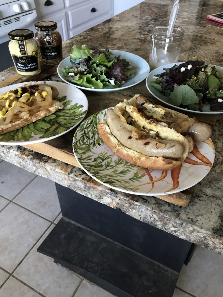 We took it easy and made beer brats and farm salad tonight a tasty different meal....
