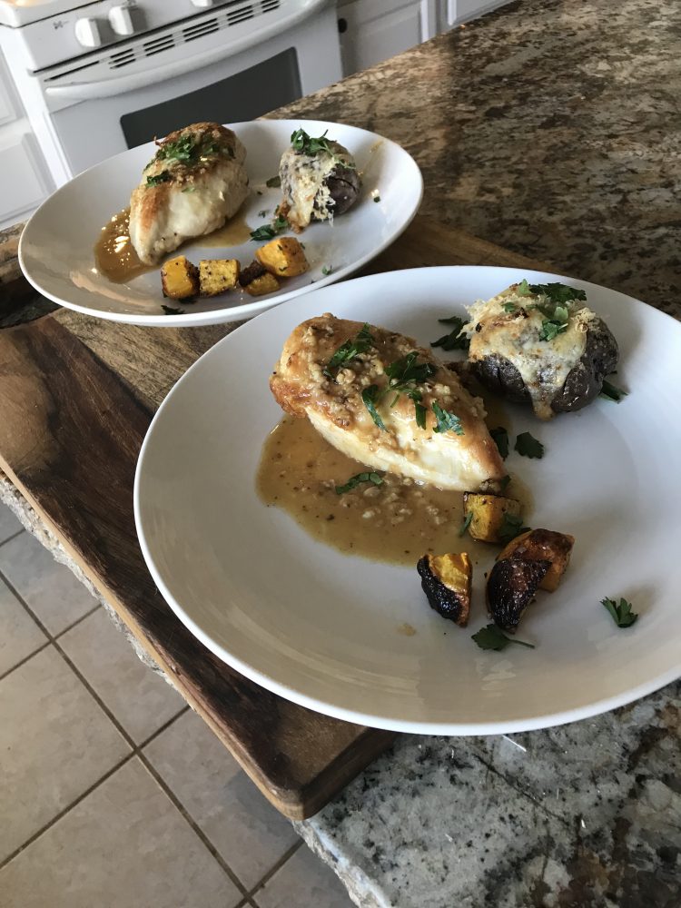 We loved shopping in our local Albertsons and thier new organic produce, yes it’s nothing like farm fresh but a great alternative. We had roasted yellow beets , garlic cheese purple potatoes the only thing not organic was the reggiono parm , then organic chicken breast with lemon garlic and our farm...