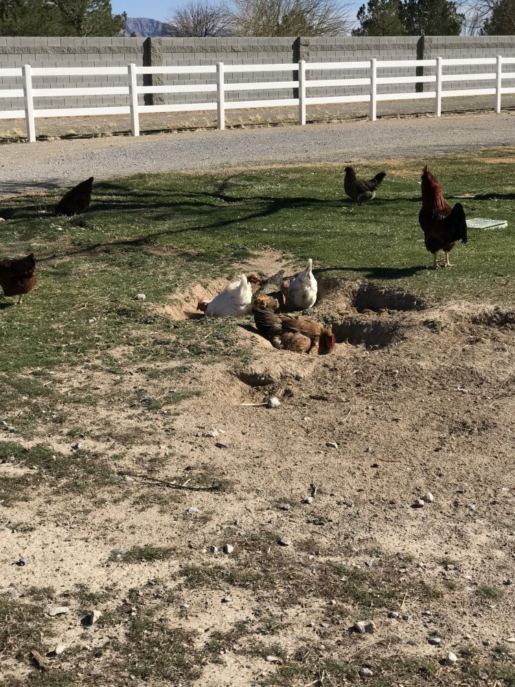 The love taking dust baths , but you have to watch out for all the holes they digs while walking on the farm....
