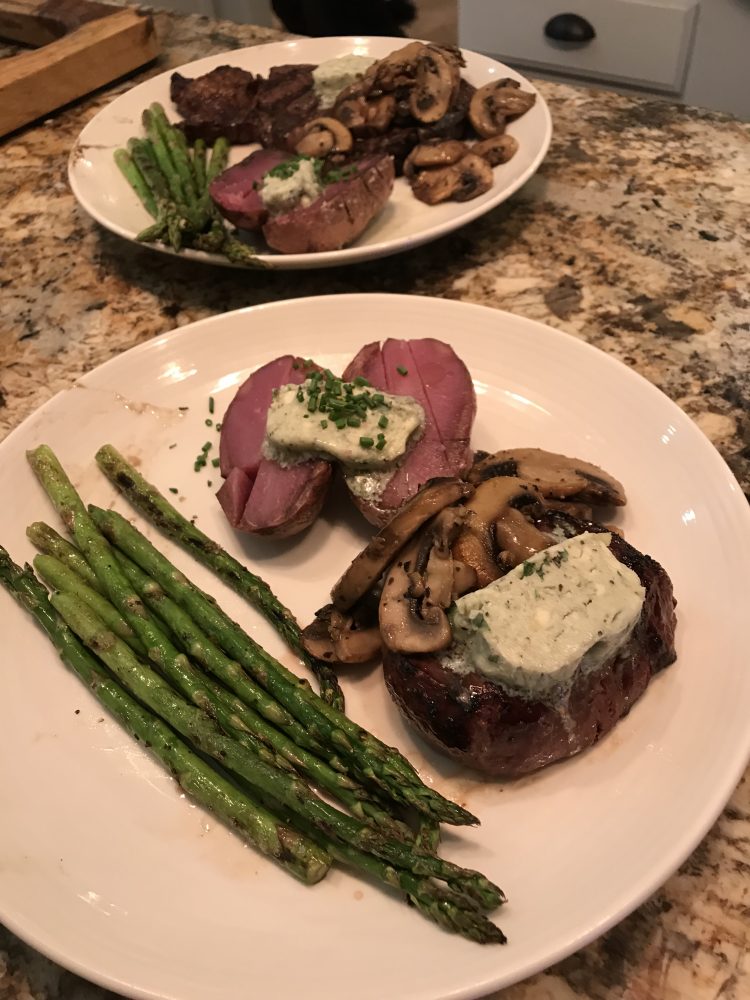 It was so easy, we are glad we stayed home with our kids and boy was the meat great and the blue cheese herbed butter was the bomb ....