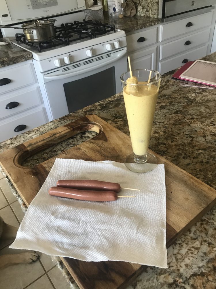 We had farm made corn dogs and Annie’s organic Mac and cheese lol one of my favorite meals. Michael indulges my cravings at times ....