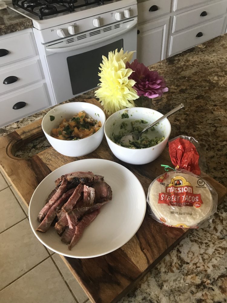 We made some fresh salsa using our heirloom tomatoes and garlic as well as some fresh guacamole for our left over tri tip street tacos for dinner tonight....