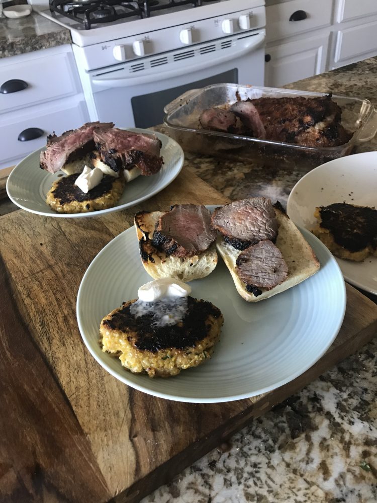 We loved our corn cakes with cream fresh along with our team spice rubbed tri tip yum yum ....