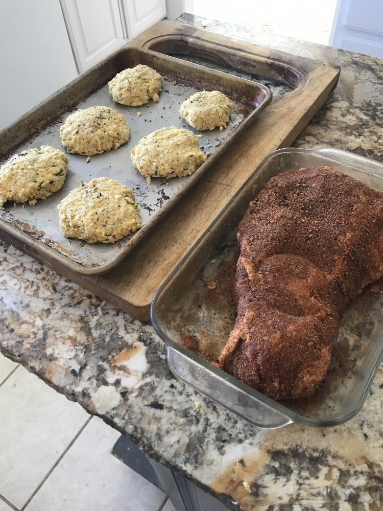 We are going to grill some sweet corn fritters and a ten spice rubbed tri tip....