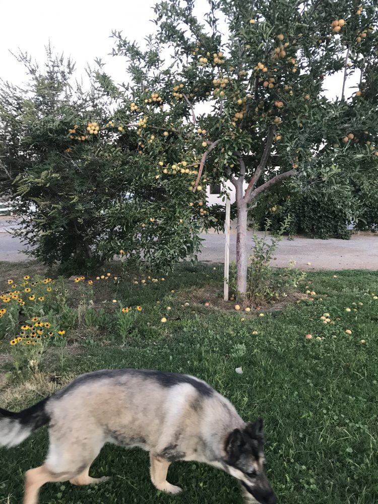 Sam, Vanessa and I collect the fallen apples and Lewis just loves them. Every apple we pick three fall on the ground....