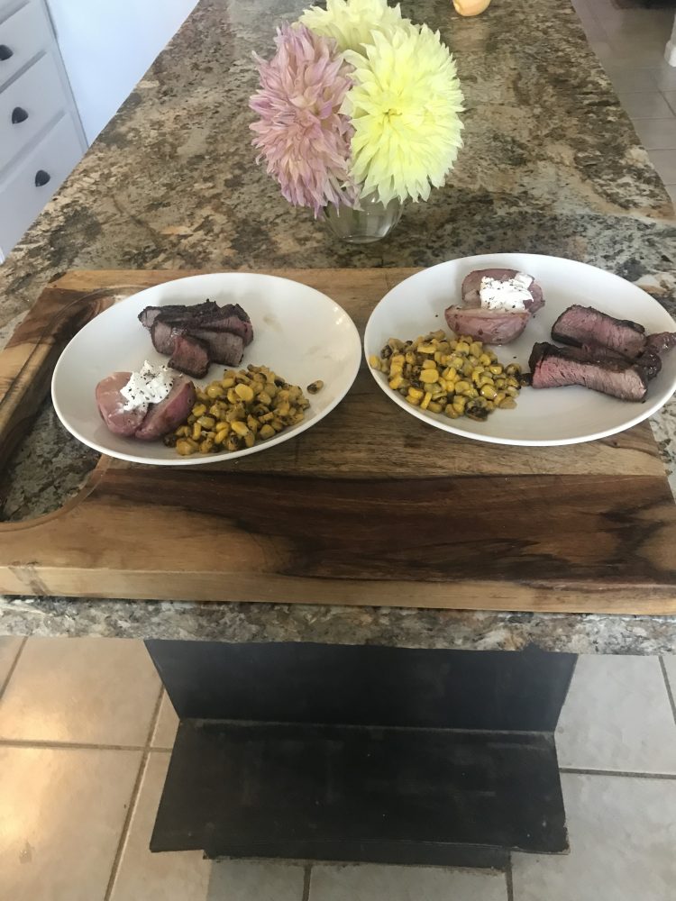 We had a what is in the freezer and garden tonight meal. We harvested our anarondack all red potatoes made a steak with roasted corn and it was great....