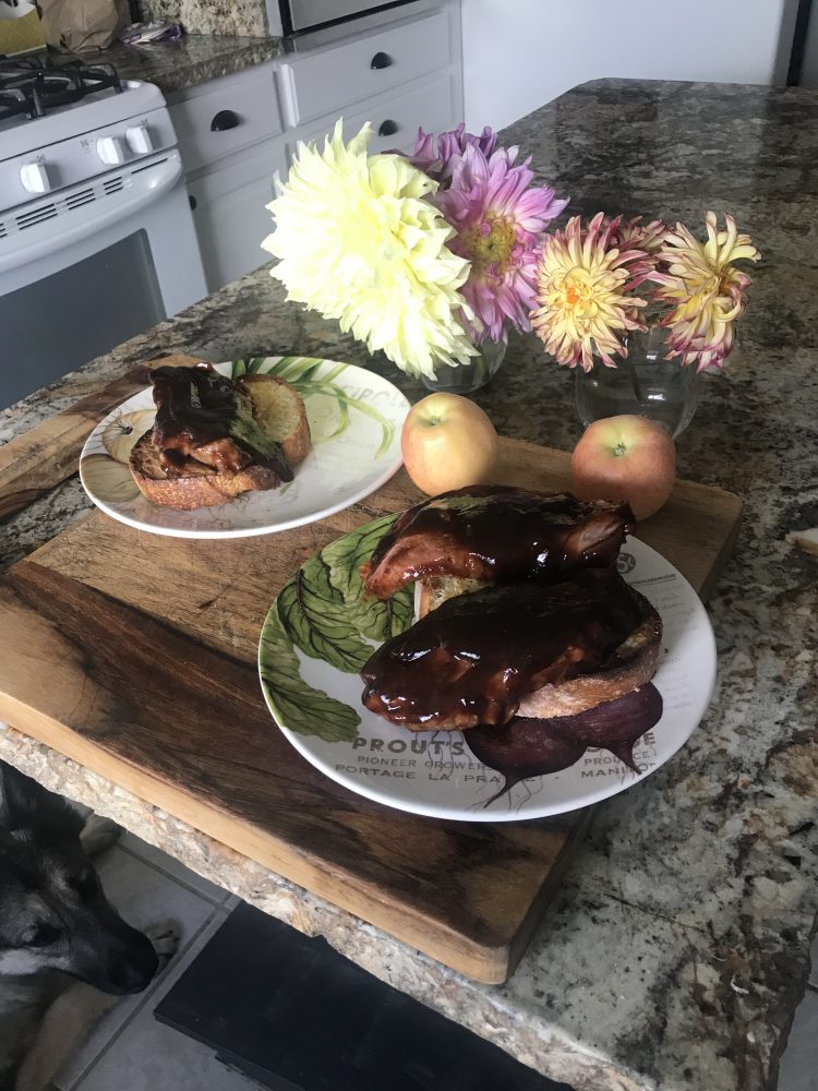 We had family company and had a prime rib farm meal and tonight we had my mother in laws left over prime rib open face sandwiches on our local French bakery fresh bread recipe . Good memories ....