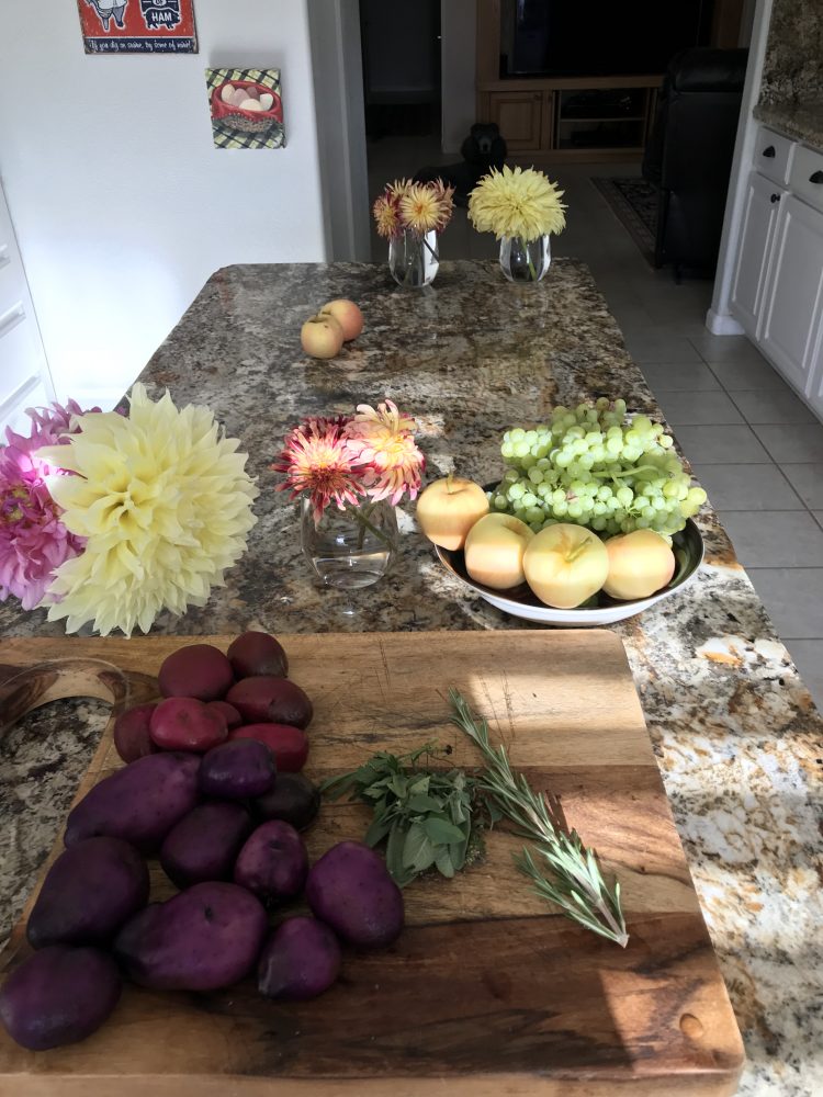 We just stepped outside our farm kitchen door and harvested fresh garlic, sage, oregano, thyme, and rosemary and it smells so good....