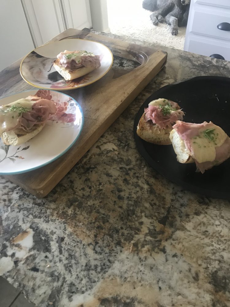 We had a light summer dinner when you have the best ingredients we got some fresh French bread from o happy bakery then put some of our farm fresh apple butter along with mustard with Black Forest ham and sharp cheddar cheese topped with farm fresh chives....