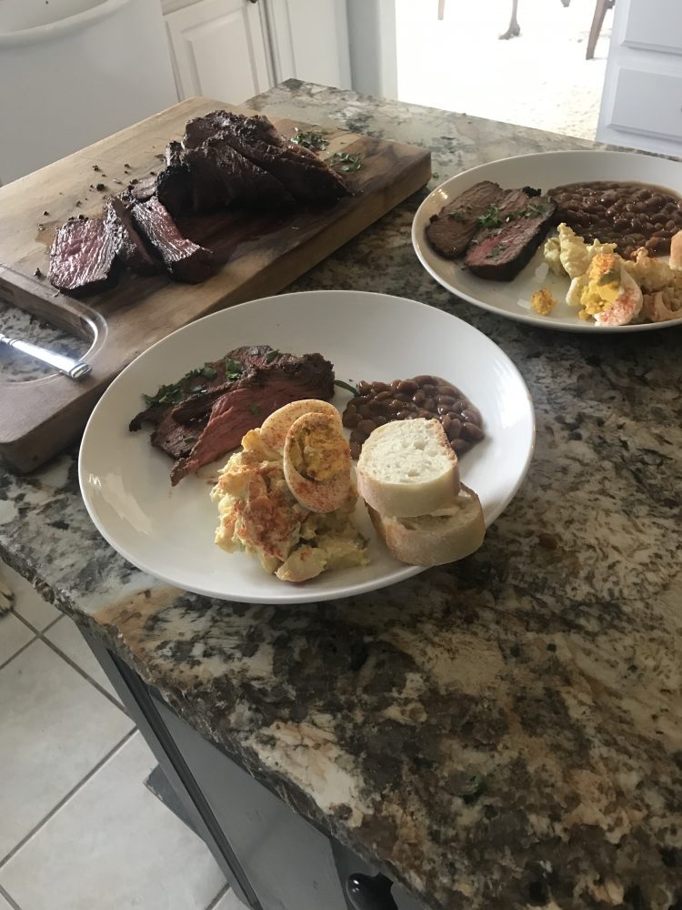 We made farm fresh organic potato salad and bush organic baked beans with our farm grilled tri tip. We will can some farm fresh soup using the left over tri tip along with our canned heirloom tomato sauces....