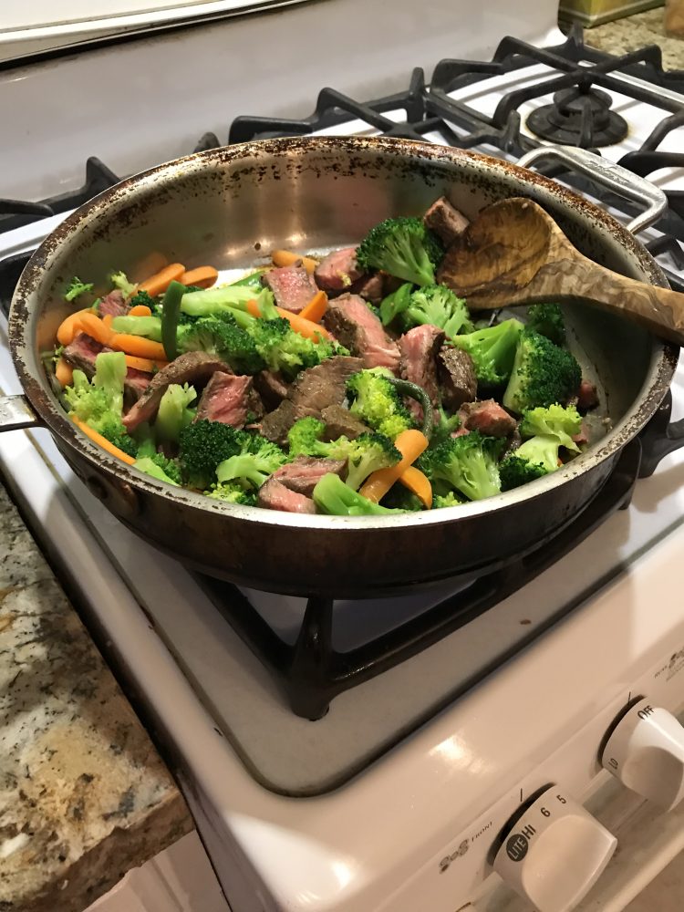 We used our left over prime rib eye steak along with some organic vegstables along with our farm fresh string beans . It’s hard as farmers using left overs as we are all about fresh....