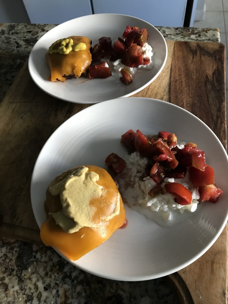 It’s hot on the farm we had some organic hamburger paddies with some organic cottage cheese with our farm fresh heirloom tomatoes oh so good....