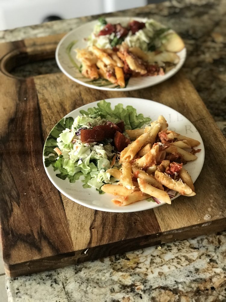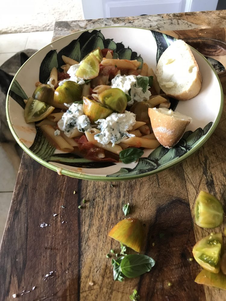 We had a chopped salad with our Japanese black prince hierloom tomatoes with left over Pomodoro pasta using our farm fresh hierloom tomatoes, garlic and parsley all farm fresh what can we say to that farm fresh great food . We did not even need our french fresh bakery bread tonight the farm food is...